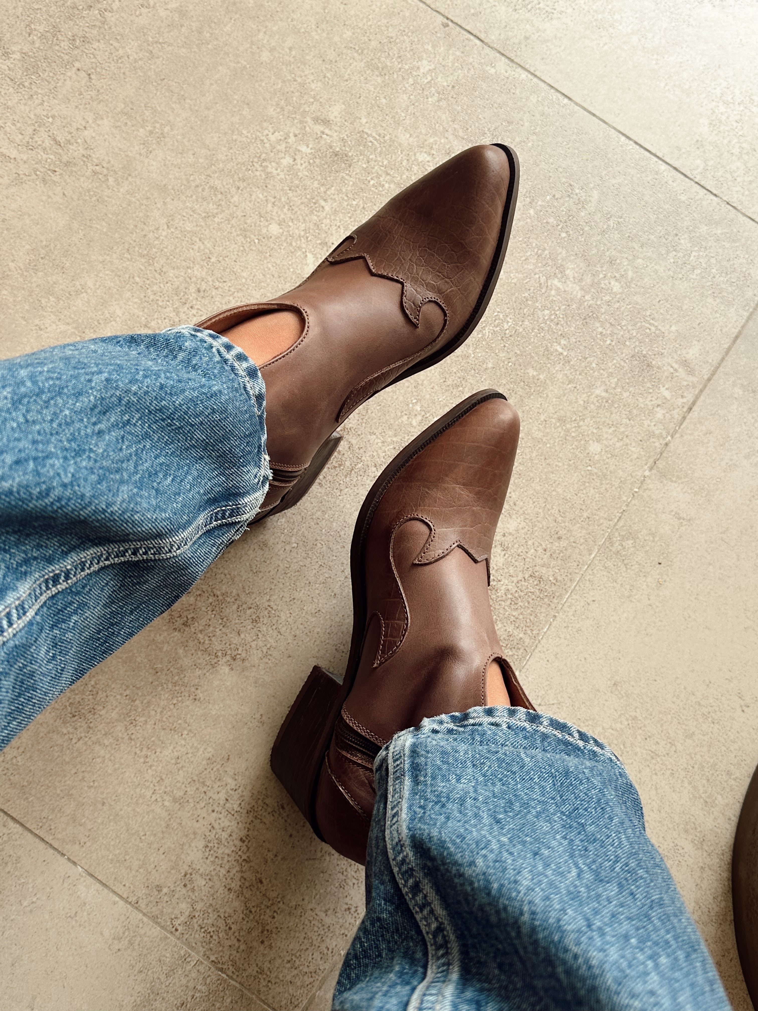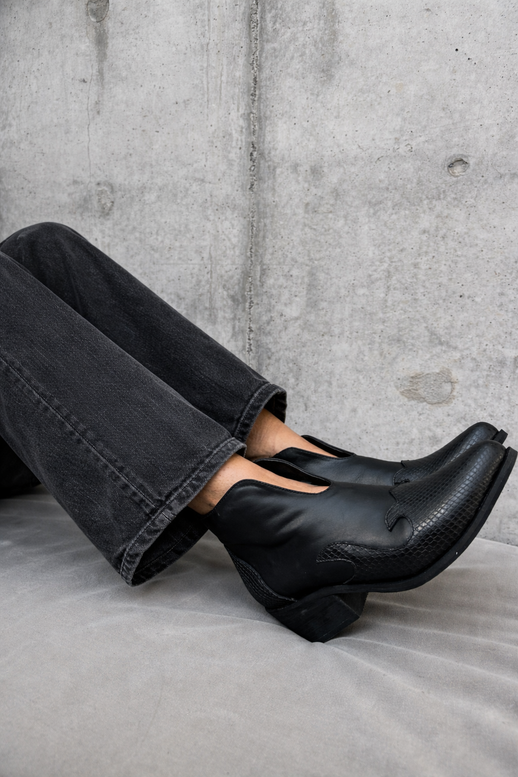 Botín de cuero negro de diseño elegante y atemporal, ideal para elevar cualquier look. Con punta estilizada y detalles de textura en la puntera y talón, aporta un toque sofisticado sin perder versatilidad. Su taco medio ancho brinda estabilidad y comodidad para el día a día.