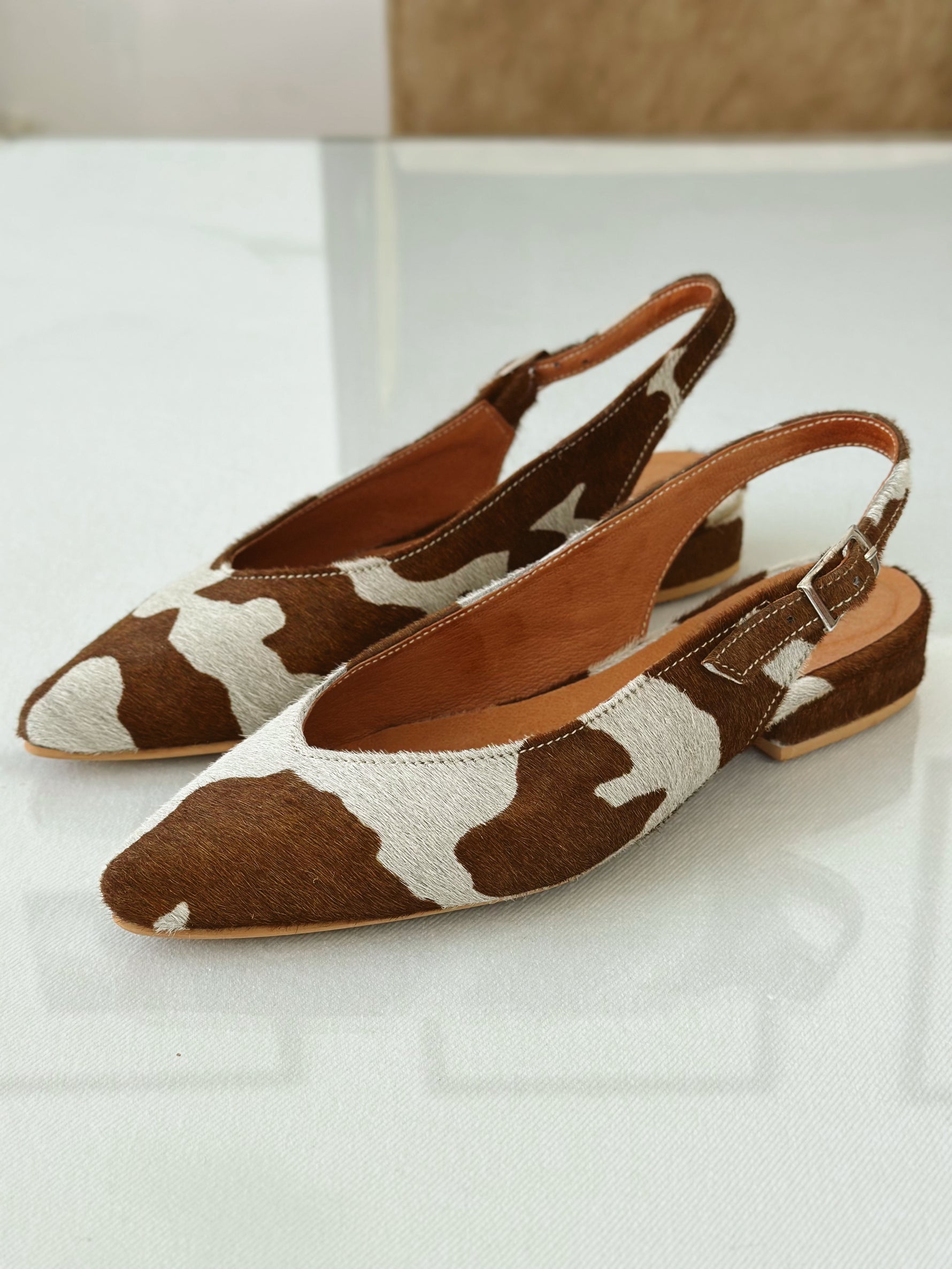 Precio unitario porBabucha de cuero estampado Vaca, textura pelo.