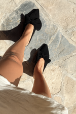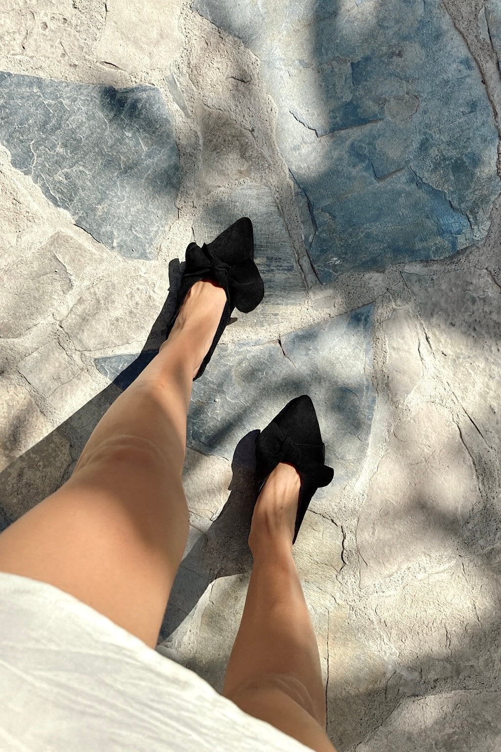 La babucha VERONA está confeccionada en cuero reno negro, suave al tacto y flexible, perfecta para acompañarte todo el día. Su diseño minimalista con delicado lazo aporta un toque femenino y atemporal.